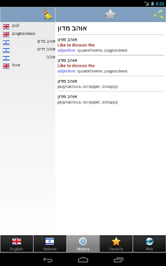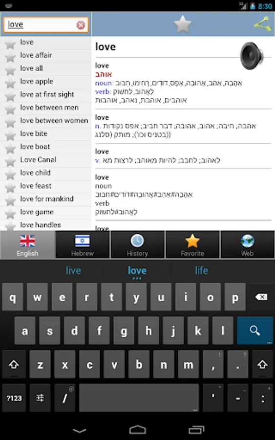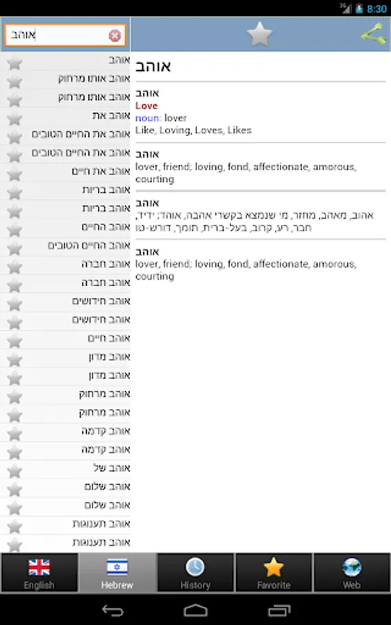 Good hebrew dic except that there is a bug, it hangs often when online - u need to switch off your wifi