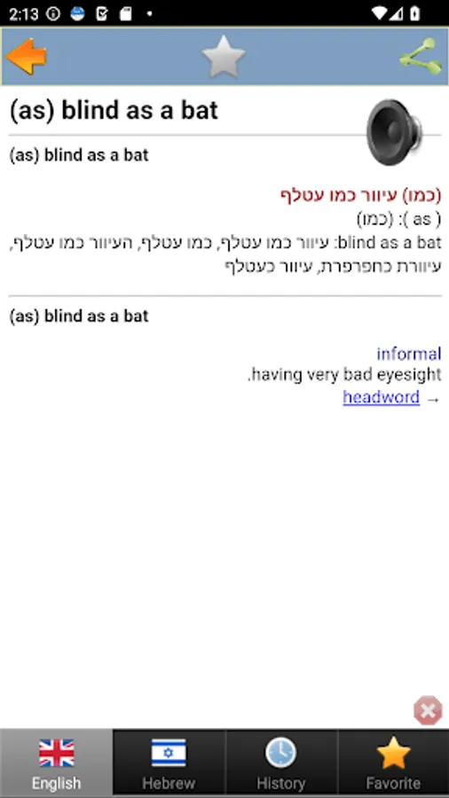 Can't see the word entered in Hebrew.. first letters obscured by 'X' (CLOSE)