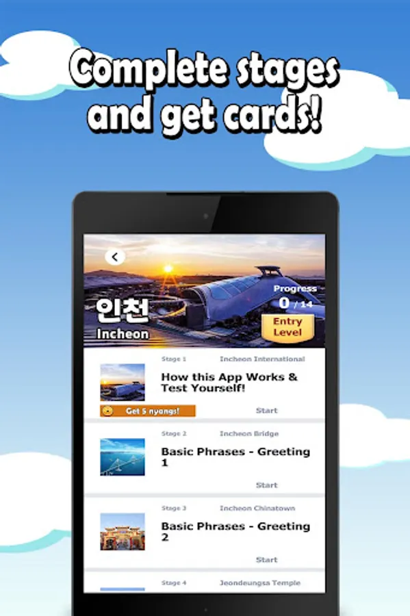 ◉Each stage introduces famous tourist attractions in Korea. Clear each stage to collect tourist attraction cards!