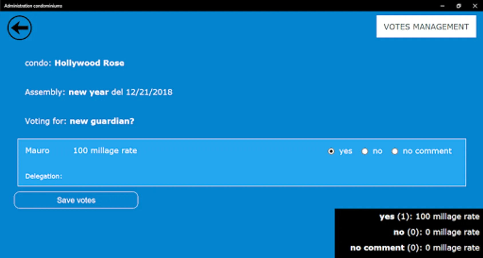 Management thousandths of millage rate of ownership and condominium meetings, presences and votes.