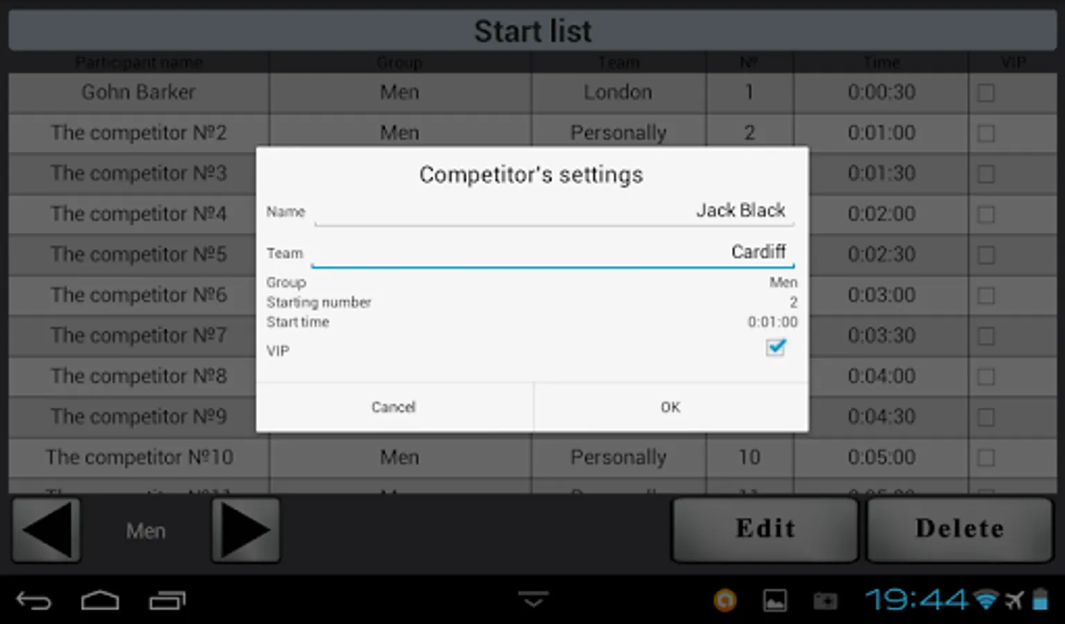 3. Adjustable interval of competitors' start