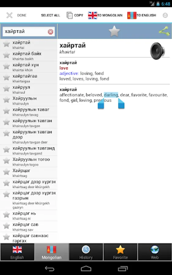 Энэ нь үнэгүй толь бичиг гар утас, таблет зэрэг бүх Android төхөөрөмж дээр сайн ажилладаг , энэ нь сайтаас гаднах шууд бус орчинд ч хүмүүсийн бүх төрлийн маш ач холбогдолтой юм .