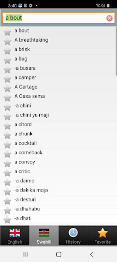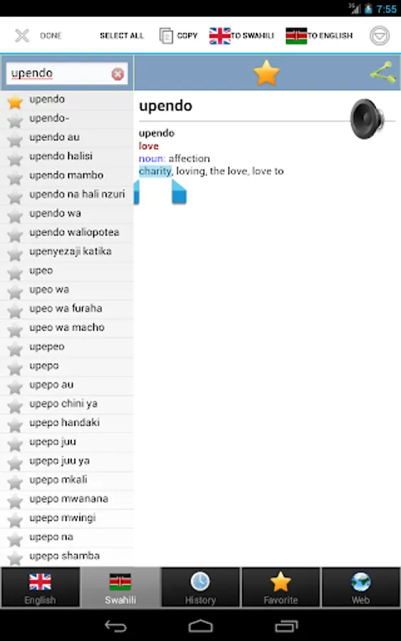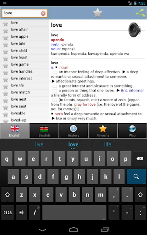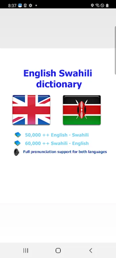 Hii kamusi bure kazi vizuri katika vifaa vyote android ikiwa ni pamoja na simu na kibao , ni muhimu sana kwa ajili ya kila aina ya watu ingawa katika mazingira ya mkondo.