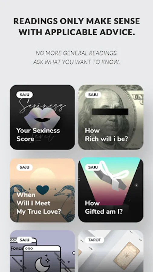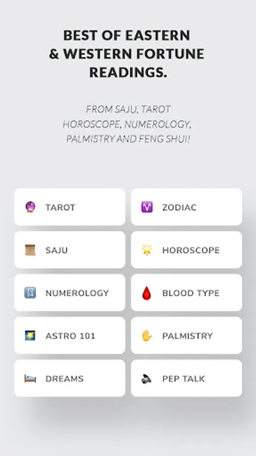 We provide the best of Eastern and Western Fortune Reading, all in one application. Whether it’s just for fun or for serious matters you need guidance on, you’ve come to the right place!