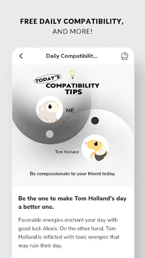 Whether it’s your favorite celebrity, a friend you’re secretly crushing on, or a family you just can’t seem to get along with- know how the two of you match up!