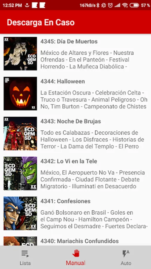 Set at a time of your choice an automatic download of last published show of "en caso de que el mundo se desintegre"