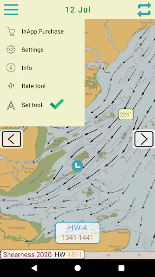 Select the 'Set' tool to measure the precise true course of any tidal stream arrow. (in-app purchase)