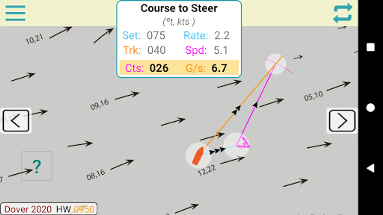 Select the 'CTS' tool to calculate a Course to Steer. (in-app purchase)