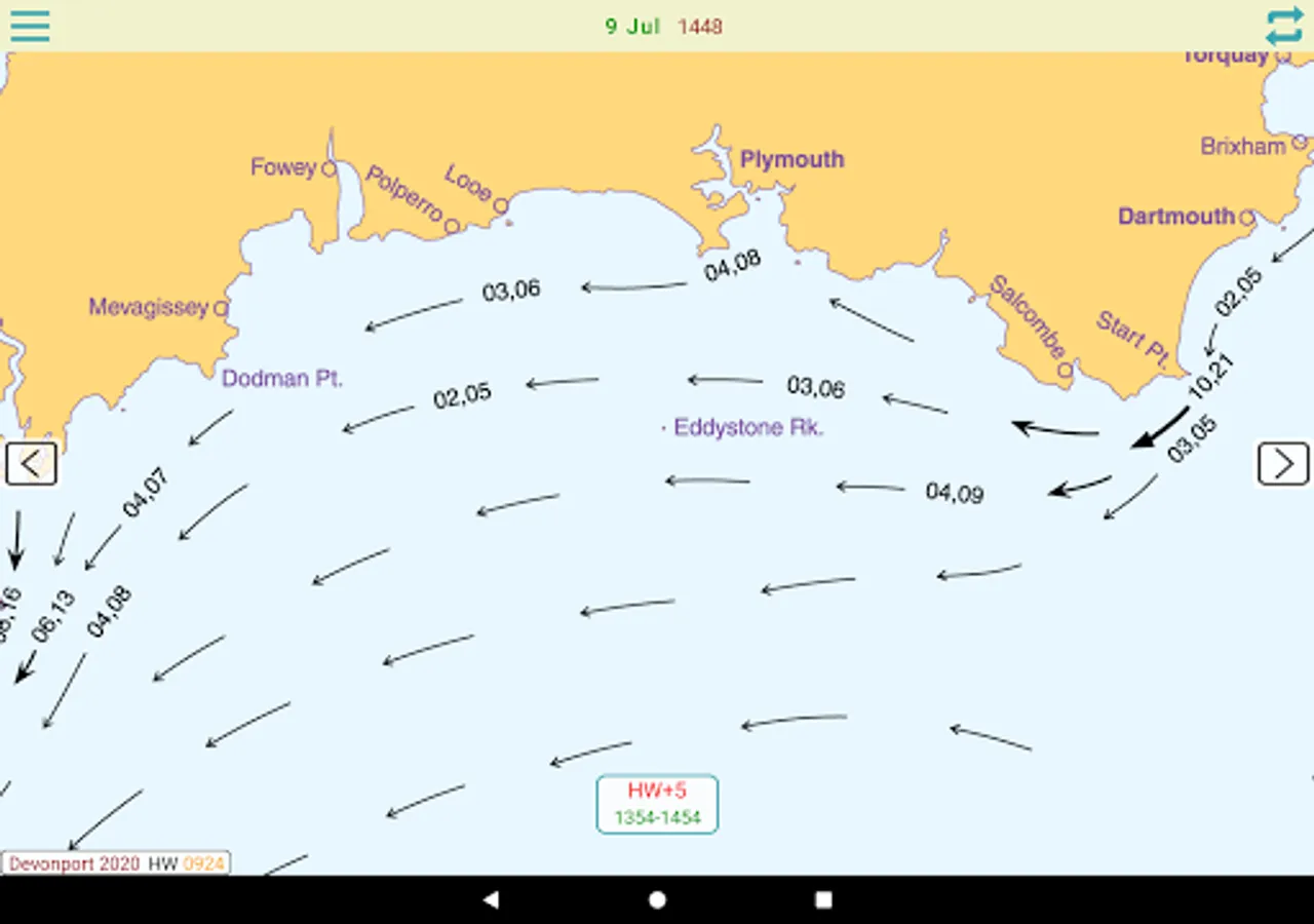 iStreams displays the valid hourly West Country tidal stream atlas for the current real time, in reference to the time of high water at Devonport... a smart app, fully functional offline. With tools to measure tide set and interpolated rate.