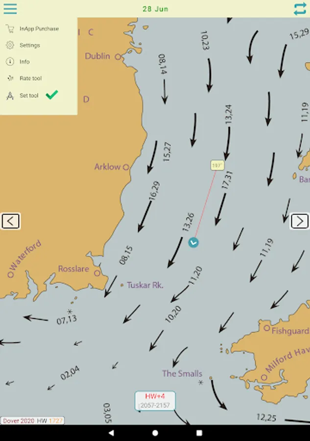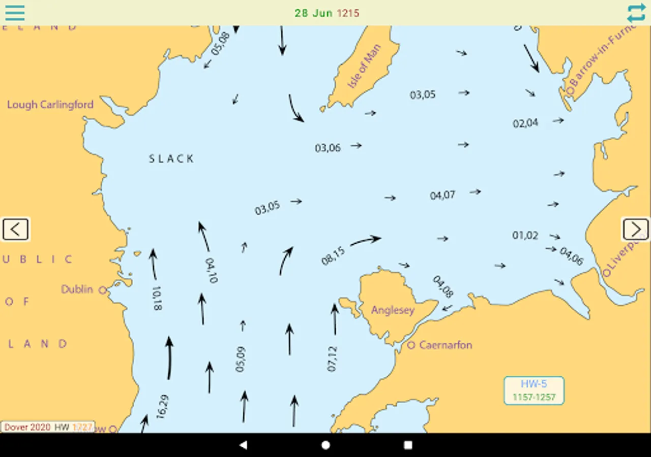 iStreams displays the valid hourly Irish Sea tidal stream atlas for the current real time, in reference to the time of high water at Dover... a smart app, fully functional offline. With tools to measure tide set and interpolated rate.