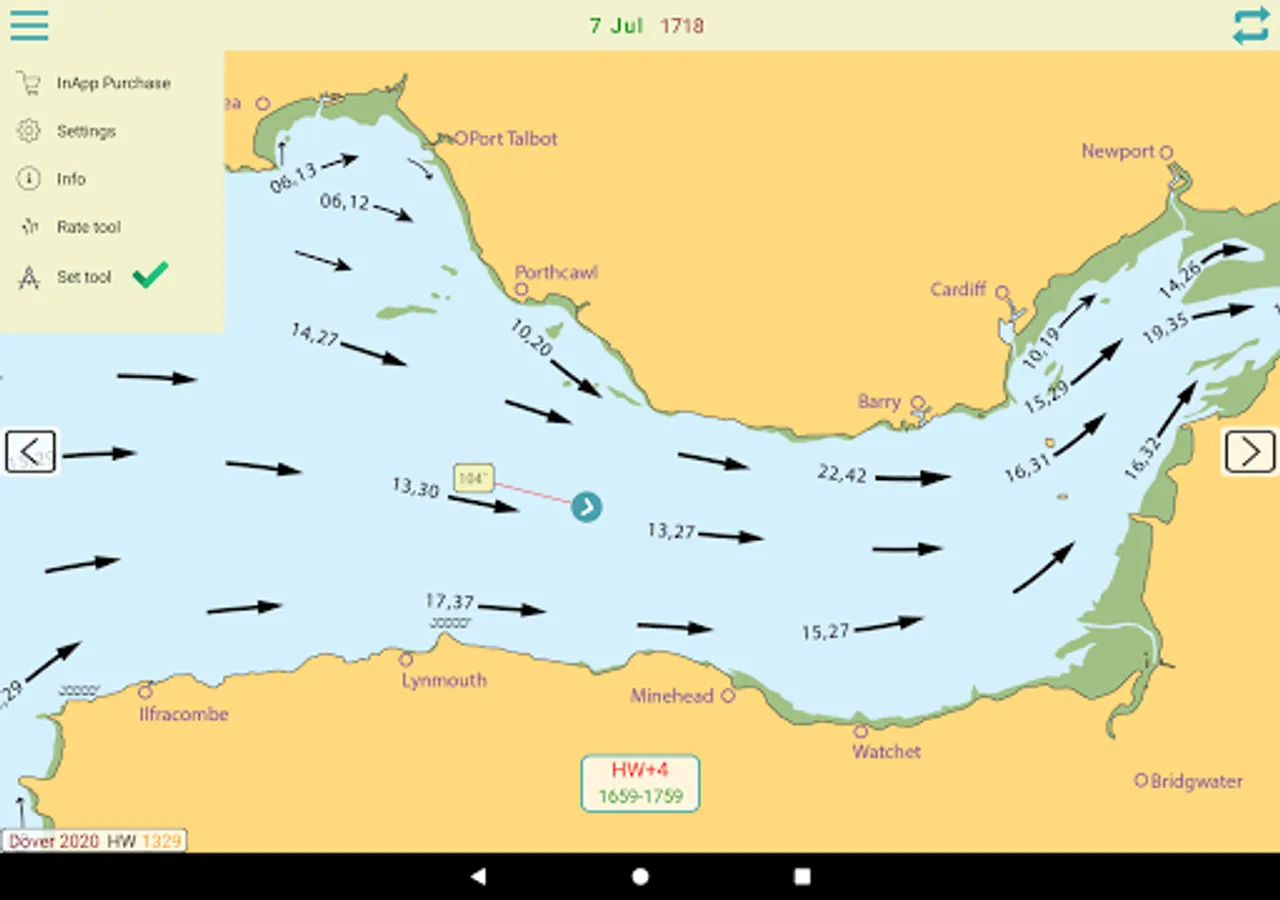 iStreams displays the valid hourly Bristol Channel tidal stream atlas for the current real time, in reference to the time of high water at Dover... a smart app, fully functional offline. With tools to measure tide set and interpolated rate.