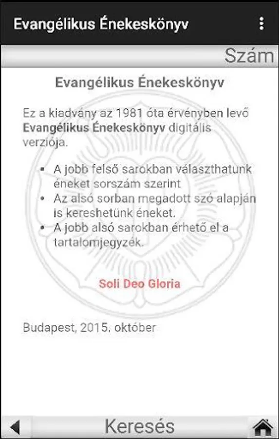 This publication is the digital version of the Lutheran hymnal in force since 1981st In the upper right-hand corner, you can choose song number order.