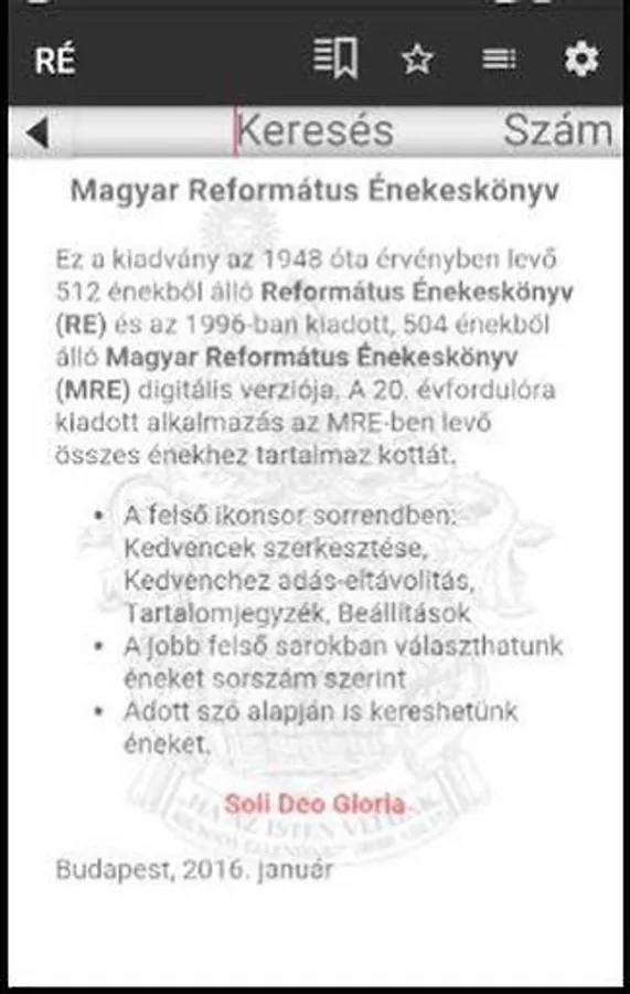 The program includes songs in the Hungarian Reformed sheet music songbooks, sheet music songs, but does not include those that are only 512 singers Reformed Songbook. Left addition, you can see that just use one hymnbook: