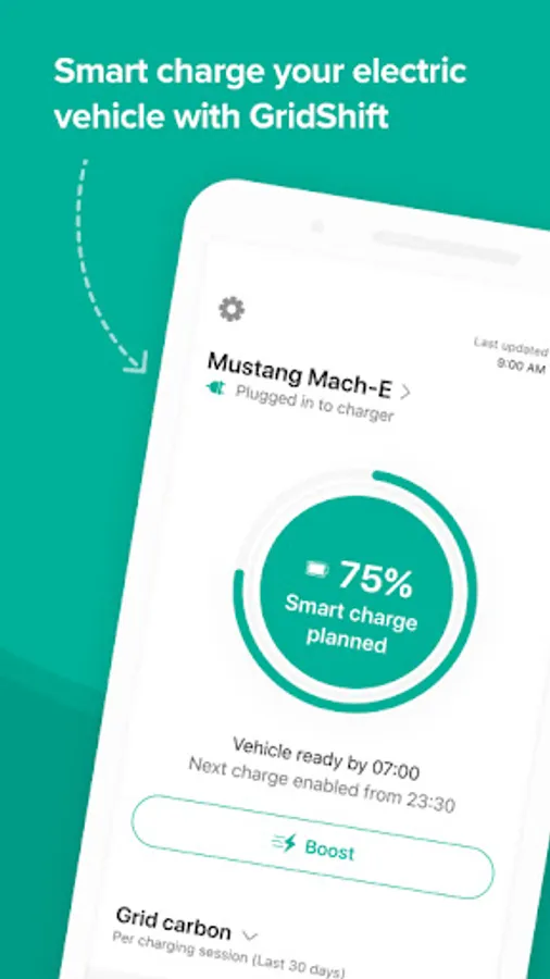 Need your car to charge right away? Override our smart-charging schedule at any time by tapping the Boost button.