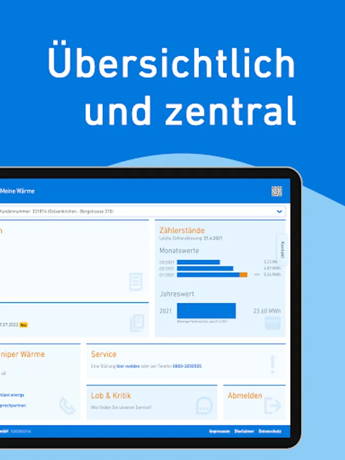 If you are a customer of ours, you can use all other features, such as viewing meter readings, invoices and contracts. In order to be able to use the app as a customer, you only need an e-mail address and the data of the district heating system in order to be able to manage it in the customer portal.