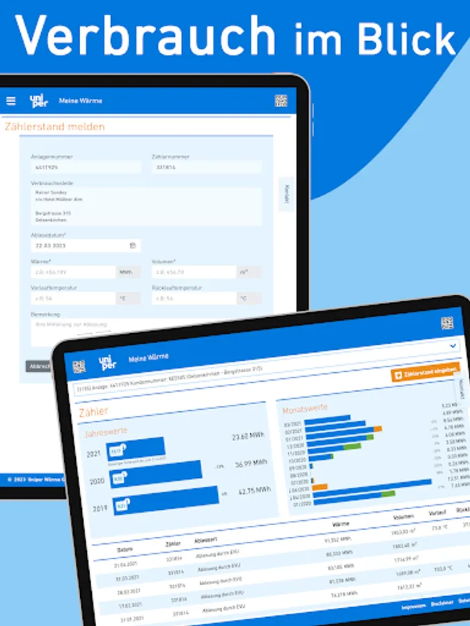 The free Meine Wärme app from Uniper Wärme GmbH gives you easy access to your data - anytime and anywhere