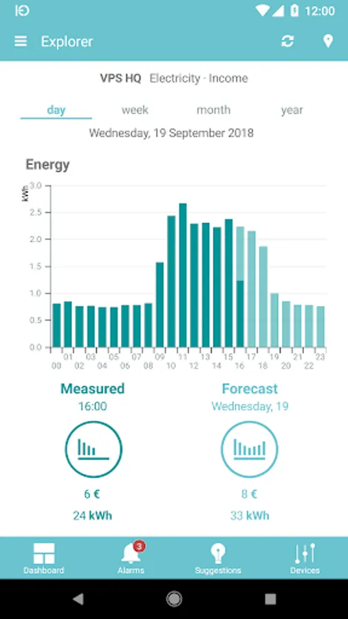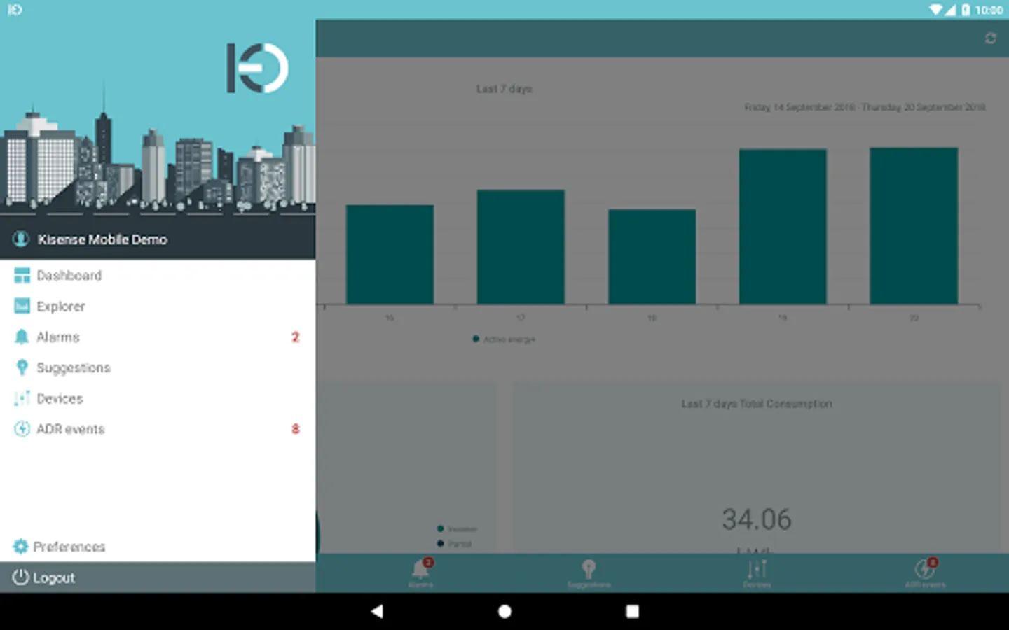 Kisense application is a free application belonging to Virtual Power Solutions S.A. for mobile devices that provides information on energy consumption and allows remote control of energy consuming equipment.