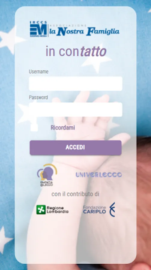 ATTENTION !!!: The APP is used ONLY to support research protocols of the IRCCS "Eugenio Medea" of Bosisio Parini, Lecco (Italy). To access the APP, access credentials (username and password) are required, which can only be provided by researchers. If you are not a parent participating in an IRCCS "Eugenio Medea" research project, you will not be able to use the APP.