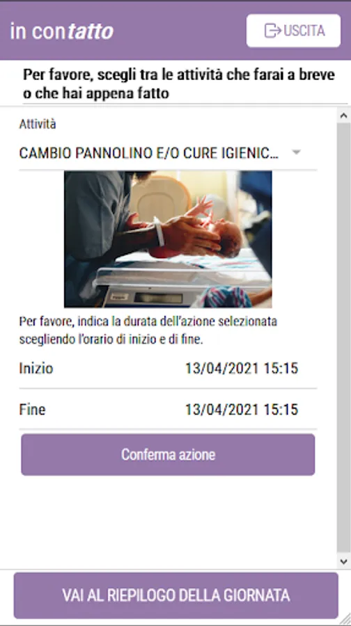 In ConTatto is an APP that allows you to collect information on parent-child experiences of closeness and proximity in the first months of life. It can be used to collect this type of information in different contexts such as the home environment or in a hospital ward (such as in the case of premature babies hospitalized in Neonatal Intensive Care). In ConTatto it is structured like a diary in which, on a daily basis, the parent notes the beginning and the end of various actions that imply closeness and proximity to the child.
