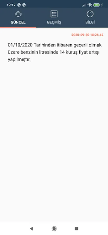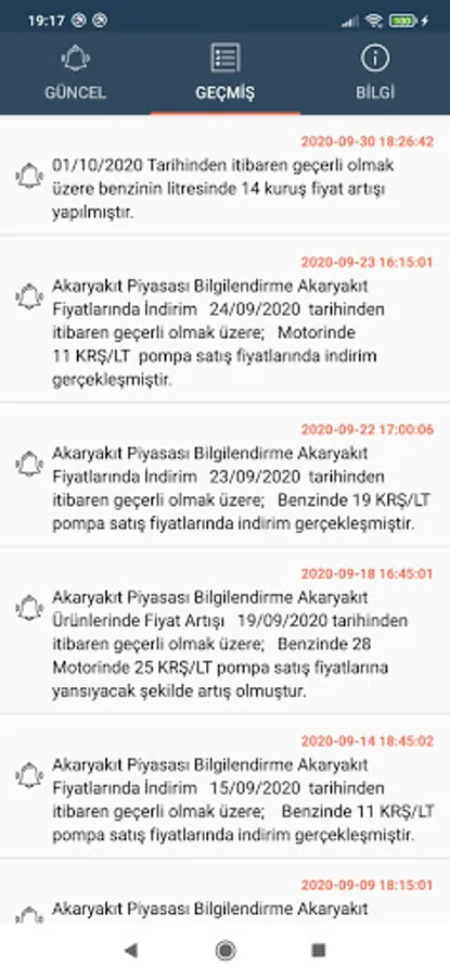 Turkey's application to fuel alarm the discount or price hikes in fuel prices, seeks to inform the public in advance.