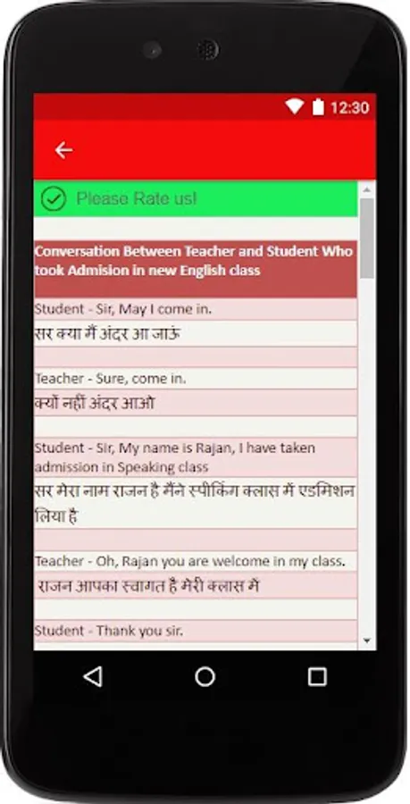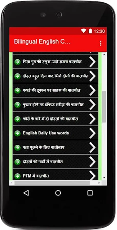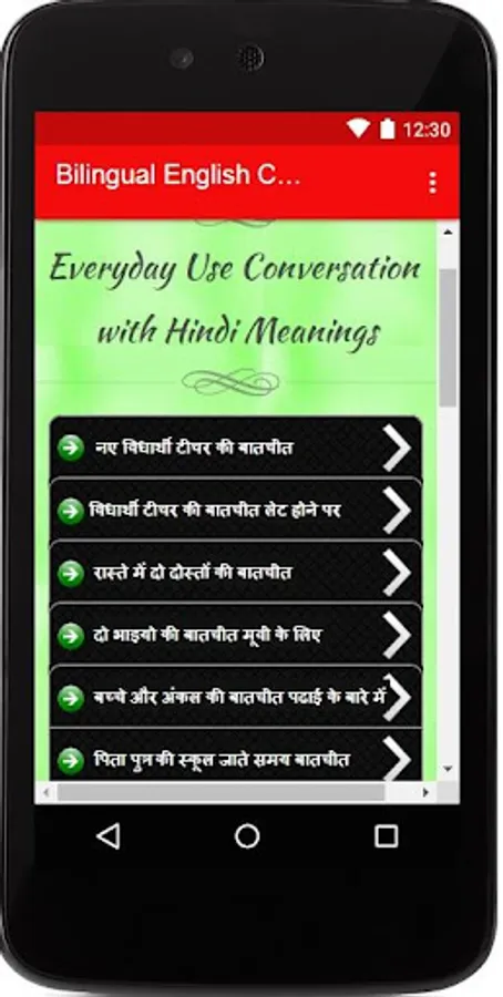 This app also have Hindi meaning of each sentence that a conversation have, so that, everyone can easily understand what would be the English of which Hindi sentence.