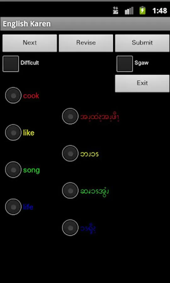 A. Select the language for the head word and select the matching word from the list below and select Submit.