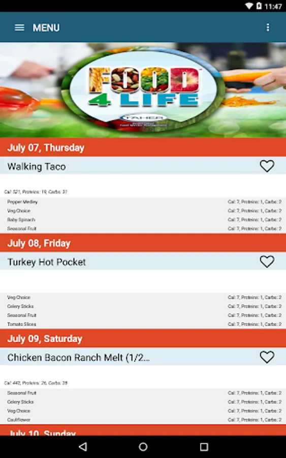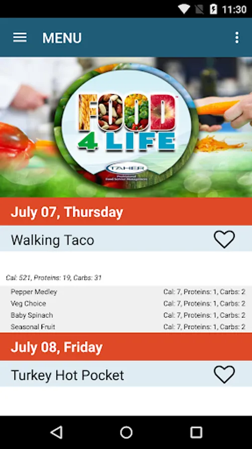 Find the current menus with the Taher Mobile App. The Taher Mobile app provides menus, nutritional, and food allergy information, in addition to the latest news and events.