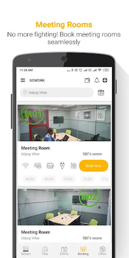 Gowork app helps members share their personal experiences, collaborate with each other, book meeting rooms conveniently and avail member only discounts.