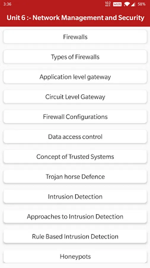 The app is a complete free handbook of Network Management & Security which covers important topics, notes, materials on the course.