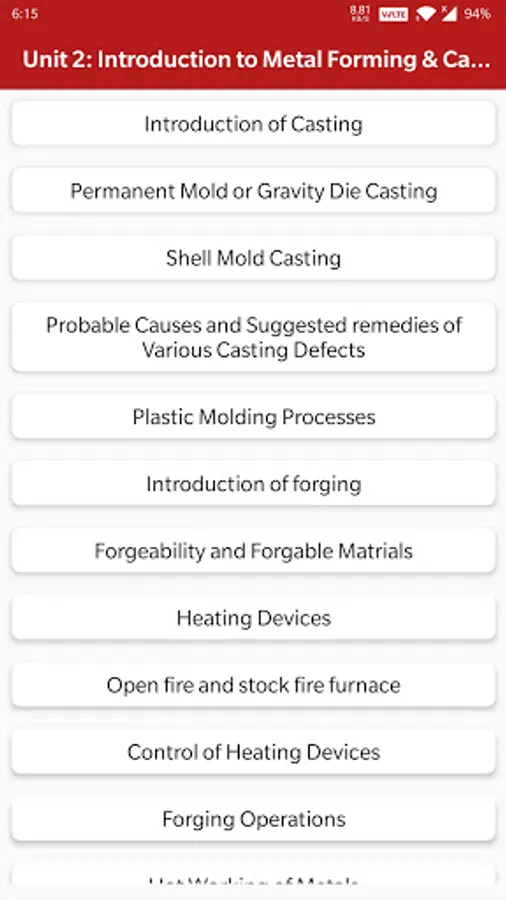 This Manufacturing Process App has 110 topics with detailed notes, diagrams, equations, formulas & course material, the topics are listed in 5 chapters. The app is must have for all the engineering science students & professionals.