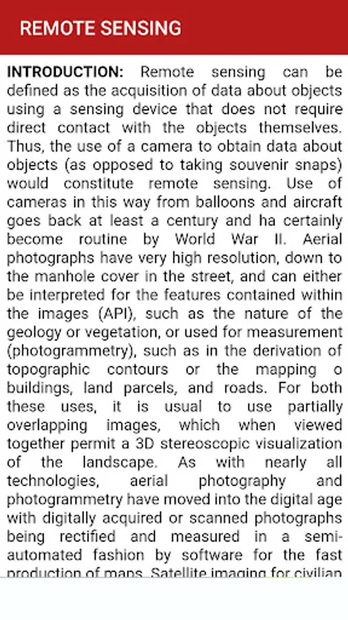 The app is a complete free handbook of Geo Informatics System which covers important all topics with detailed notes, diagrams, equations, formulas & course material.
