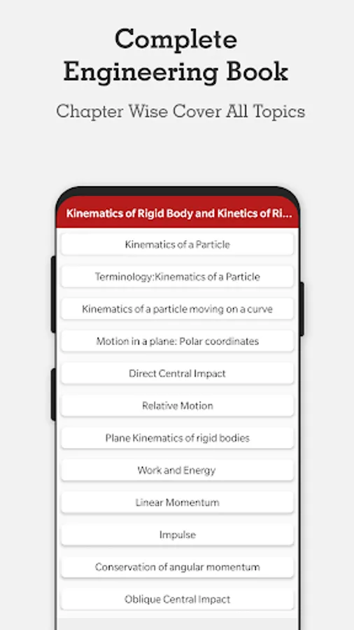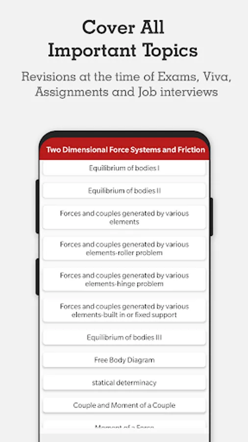 The app is a complete free handbook of Engineering Mechanics which covers important topics, notes, materials on the course. Download the App as a reference material & digital book for Diploma & degree courses.