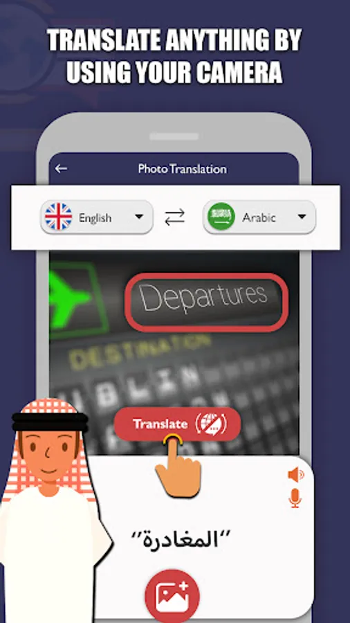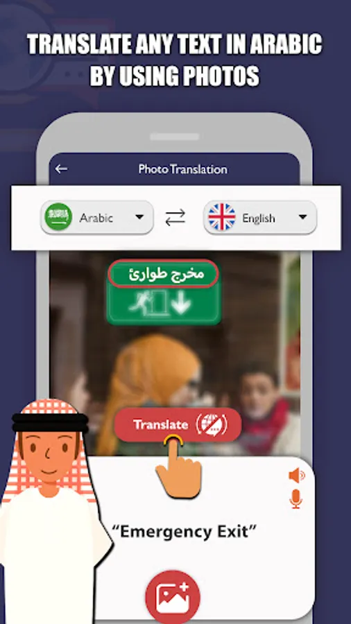 Arabic English Translator app supports Arabic and English language voice notes and images having English Arabic Text for easy translation.