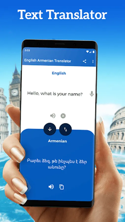 Are you looking for Armenian translator or Armenian to English translation app, With this app, you can translate Armenian voice or Armenian texts into English, or translate English voice and text into Armenian. this is the best Armenian translator app into English.