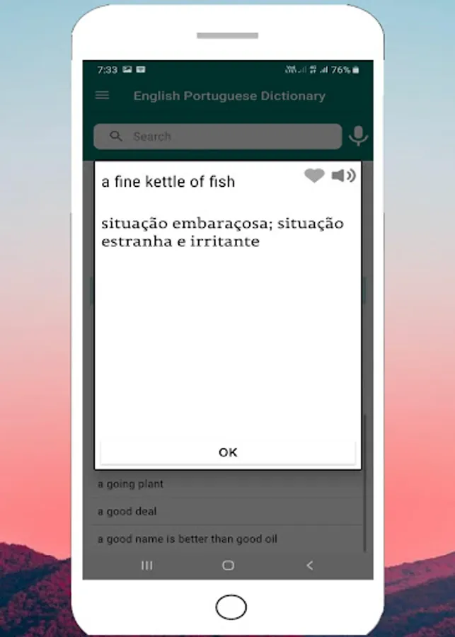 The best Portuguese Dictionary is here where you can easily search any words you are seeking for in a multiple way. It’s a two in one dictionary in one application English to Portuguese Dictionary and Portuguese to English Dictionary. This is not only a dictionary but also a learning tool. You can use it without Internet and carry a big dictionary wherever and whenever you go in just a small smart phone. Translator and text to speech is also available for the users. When you start typing, you will see some words starting with the letters you typed. This application will be helpful to any students or non students to find out the meaning of any word. This dictionary can also be known as English Portuguese dictionary or Portuguese English dictionary.