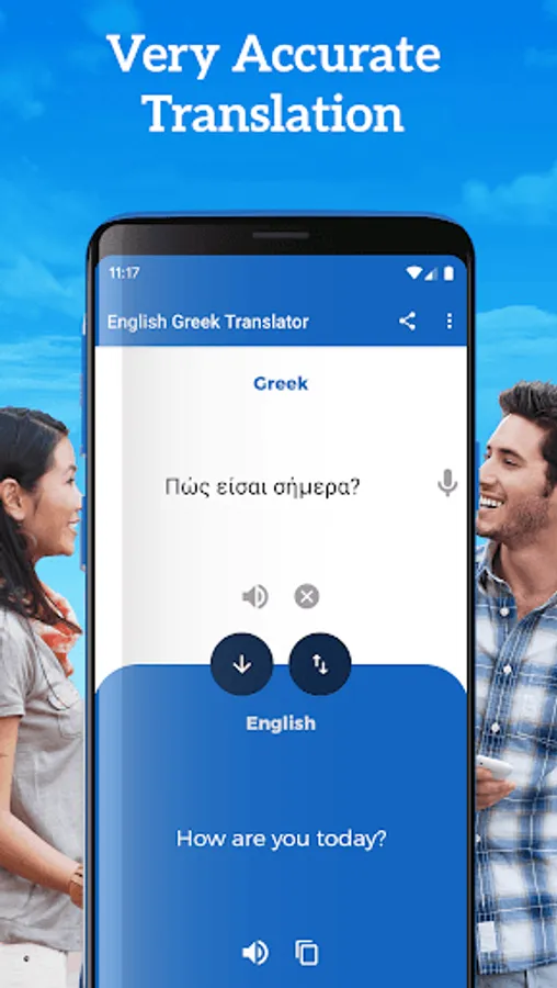 Greek English translator - free dictionary app, is the best app for Greek or English translation. Our fast translator application allows you to translate your voice, text and sentences from English to Greek or Greek to English.