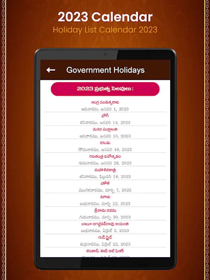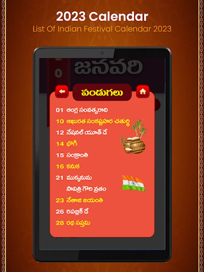 - This app intends to bring you information on Indian Calendar, Bharath Holidays & Indian Festivals are available in English, Hindi, Telugu