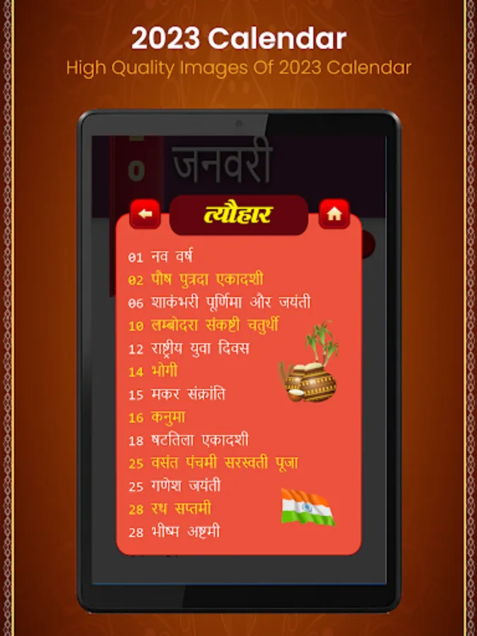2023 Calendar is Simple, Pictorial & Informative Hindu Calendar 2023 App for daily Panchang, Festivals, Shubh Muhurt, festival days & Indian Government Holidays. Panchang is also known as Hindu Calendar.