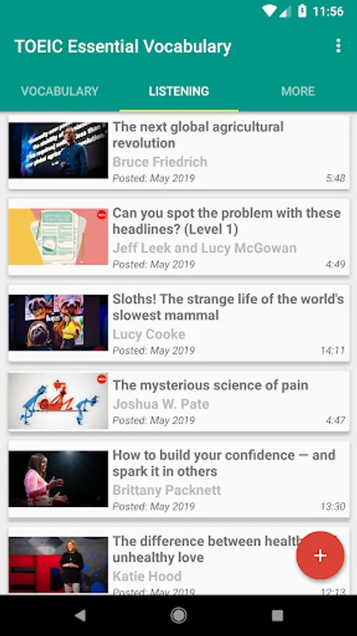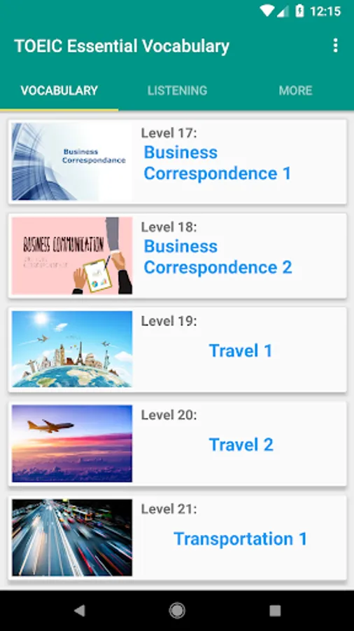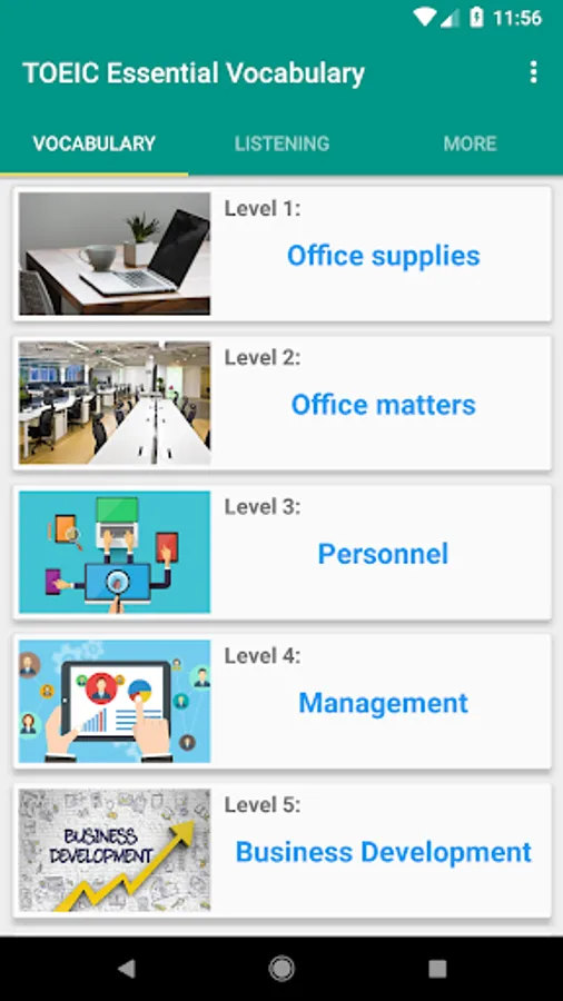 TOEIC Essential Vocabulary is a free application help you to learn new vocabularies for TOEIC test everyday.