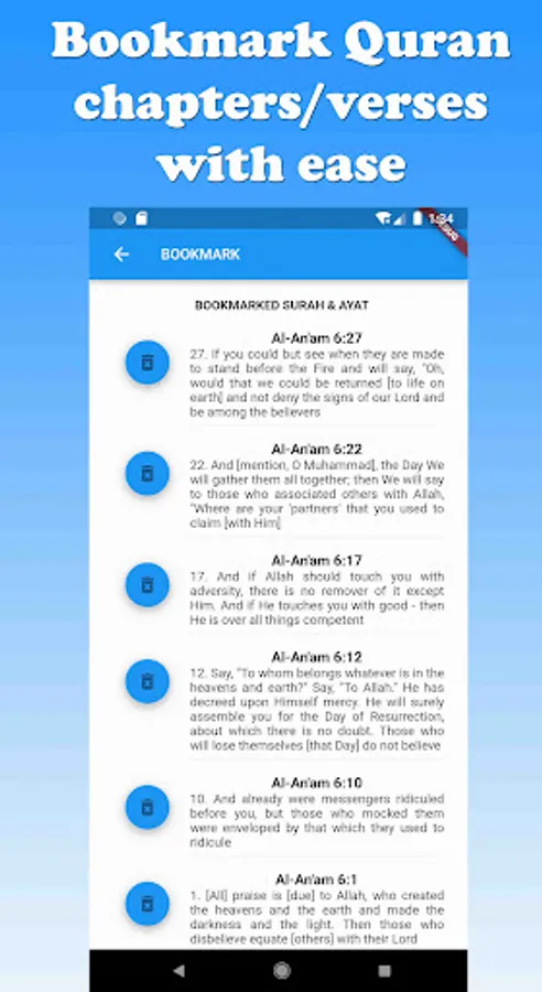 - Ability to select and share verses (Ayat) or bookmarks through email, text/SMS or social media