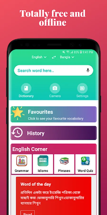This English To Bangla Dictionary app is totally free and Works totally offline!