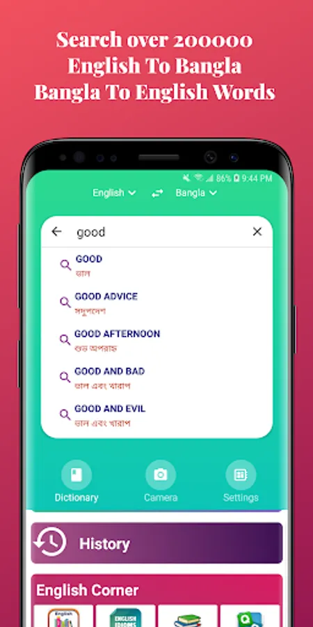 English To Bangla Dictionary app is the leading dictionary app for andoid with over 200000 trusted bangla meanings,definitions and synonyms,example.