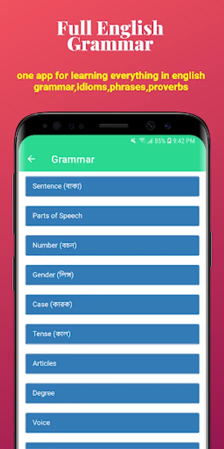 This english to bangla dictionary also includes a full english grammar that described easily.you can learn english grammar easily for this english to bengali dictionary.