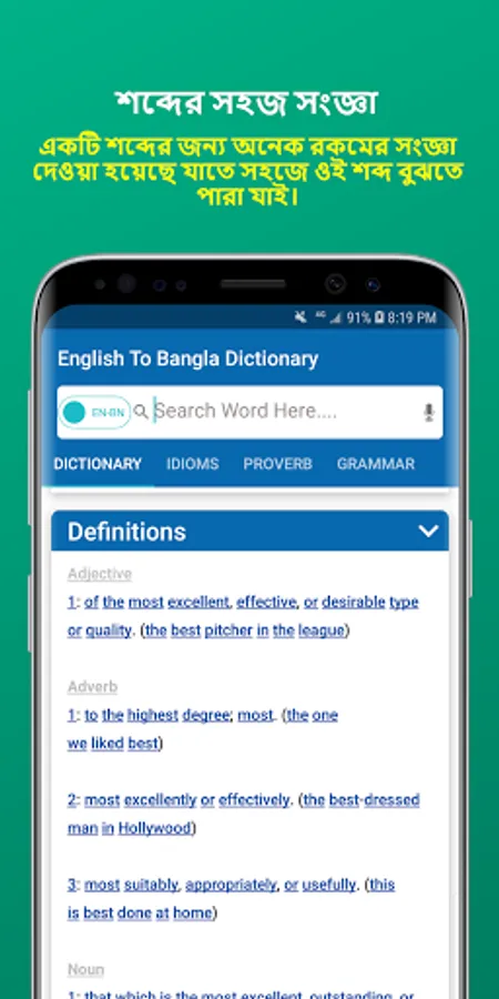 This English to bengali dictionary are lots of definitions for English word so that you can easily understand what the word meaning is.