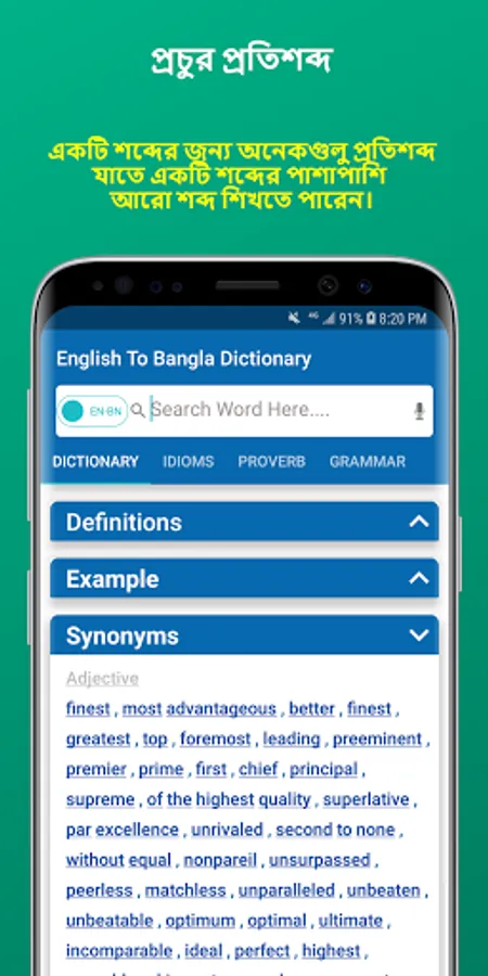 প্রচুর প্রতিশব্দ – এই ইংলিশ টু বেঙ্গলি অভিধান এ প্রচুর প্রতিশব্দ আছে