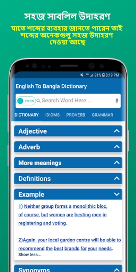 English to bengali dictionary app is the leading dictionary app for android with over 200000 trusted bengali meanings,definitions,synonyms and examples.