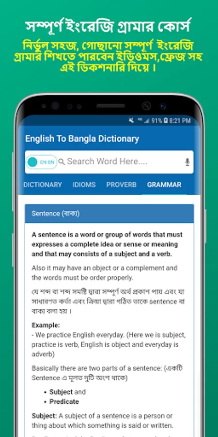 This english to bengali dictionary also includes a full english grammar that described easily.you can learn english grammar easily for this english to bengali dictionary.