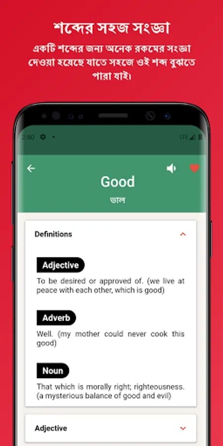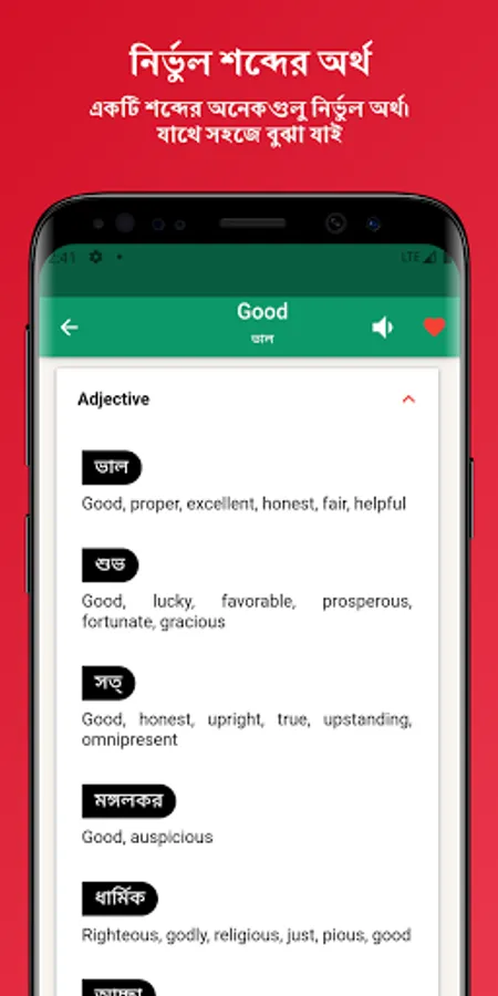 ইংলিশ টু বেঙ্গলি অভিধান অ্যাপটি অ্যান্ড্রয়েডের জন্য দুই লাখের ও বেশি নির্ভরযোগ্য বেঙ্গলি অর্থ, সংজ্ঞা, প্রতিশব্দ এবং উদাহরণ সহ অ্যান্ড্রয়েডের জন্য শীর্ষস্থানীয় অভিধান অ্যাপ।