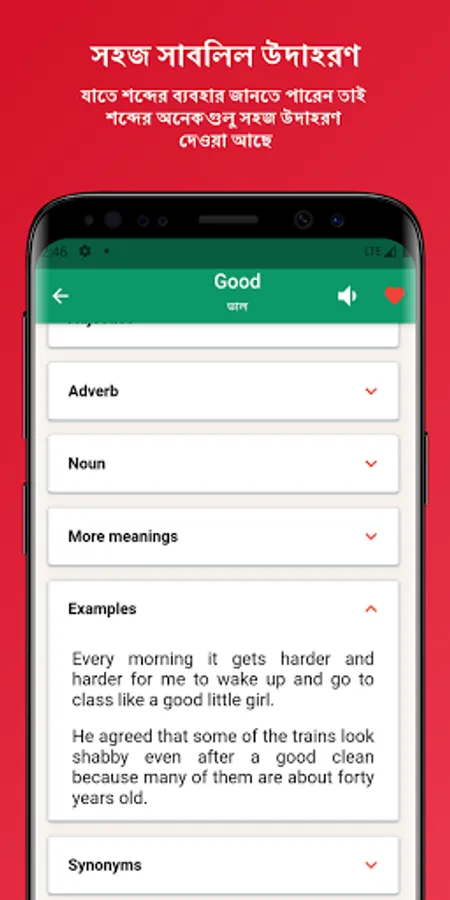 - Search autocomplete – this feature helps you finds English Bengali words quickly when you type one or two words