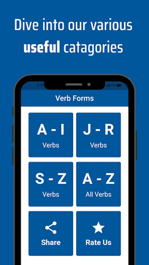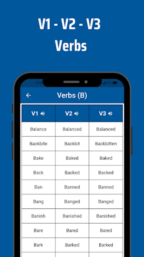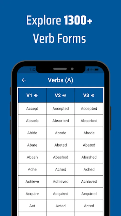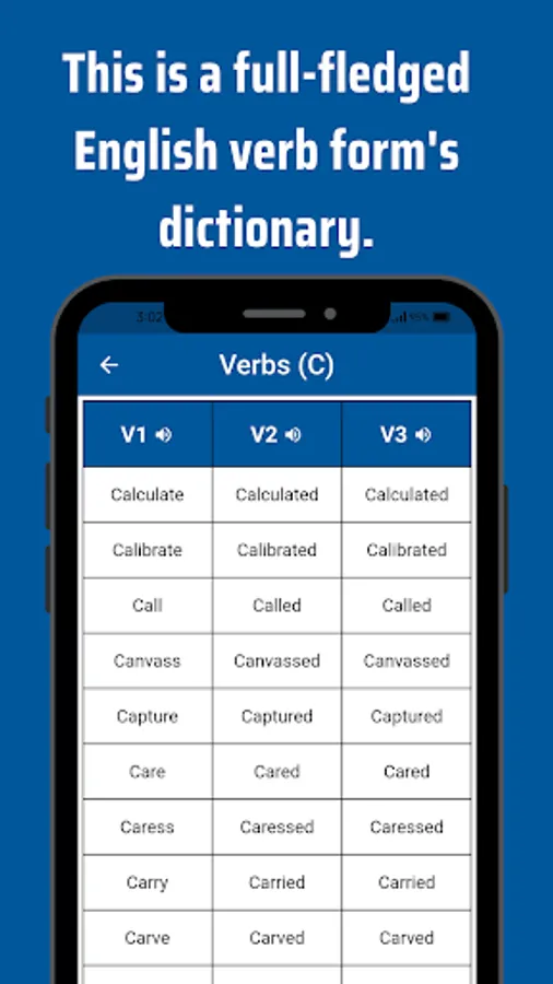 Clueval presents English Verbs. This App is a dedicated to learning English verbs. In this app you can explore useful 1300+ verb forms. It is a full-fledged English verb forms dictionary. We have added main three forms of verb V1, V2, V3. You can learn verb forms using this application.